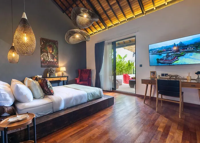 Esta villa se encuentra a unos 15 minutos en coche de la Plaza Puputan Badung. La zona incluye lugares de compras como la Krisna Oleh - Oleh Bali Sunset Road, situada a unos 3,1 km. Situado a unos 25 minutos a pie del Templo Petitenget, el establecimiento es popular entre fieles y turistas.